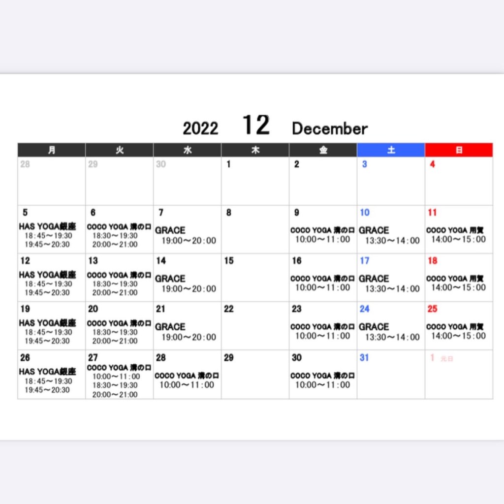 12月ヨガスケジュール